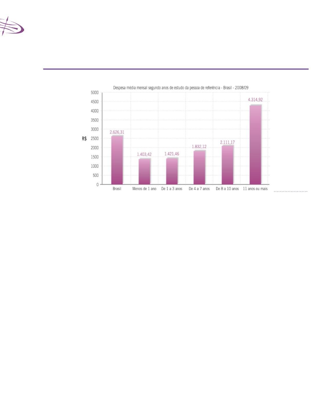 Despesa mensal média familiar conforme nível educacional: 2008/2009