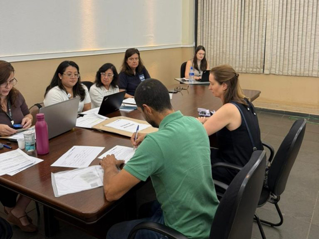 | Comissão organizadora recebe aprovados no concurso de pesquisador para sessão de escolha de vagas (crédito: Luíza Cardoso/Apta) |